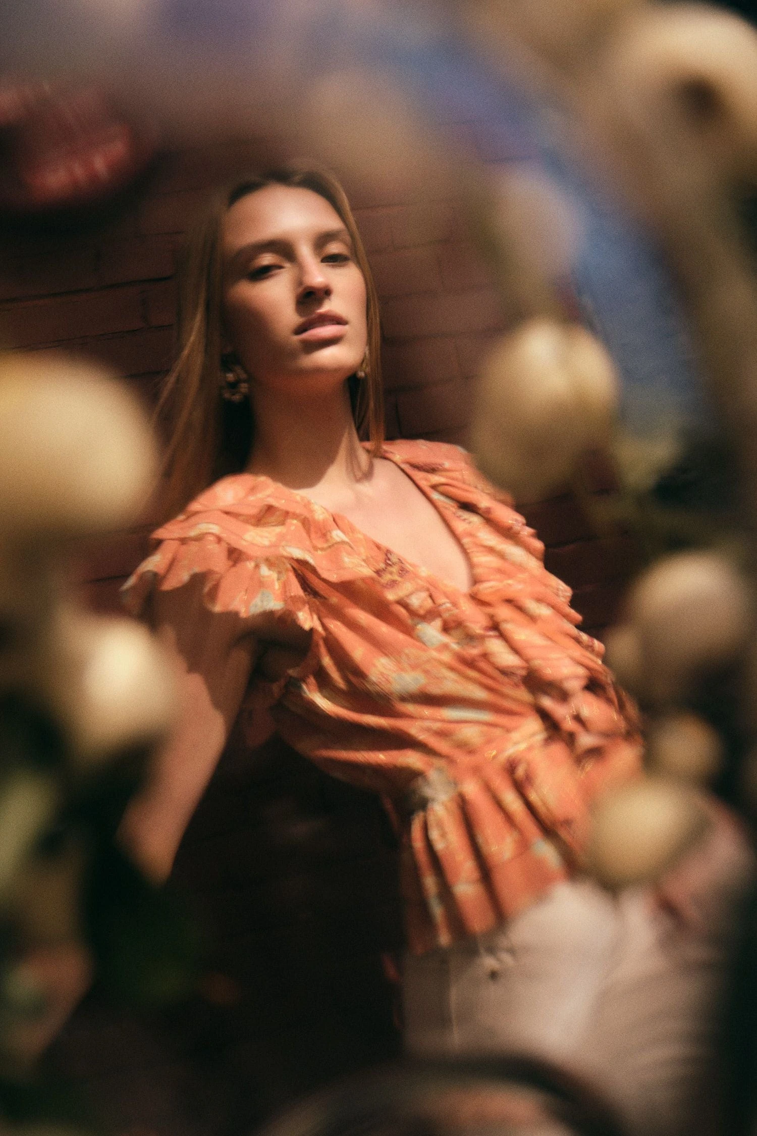 An Ulla Johnson exclusive only available in our stores or on our website, the Kaede Top is a romantic blouse, crafted from silk crinkle chiffon, a signature fabric featuring tiny gold flecks of gilded thread. Cut in a delicate peach floral print, this short-sleeve top is defined by layered cascade ruffles that beautifully trim the open neckline. It’s finished with two sets of grosgrain ribbon ties, one of which enhances the peplum-hem waist and creates a flattering shape.