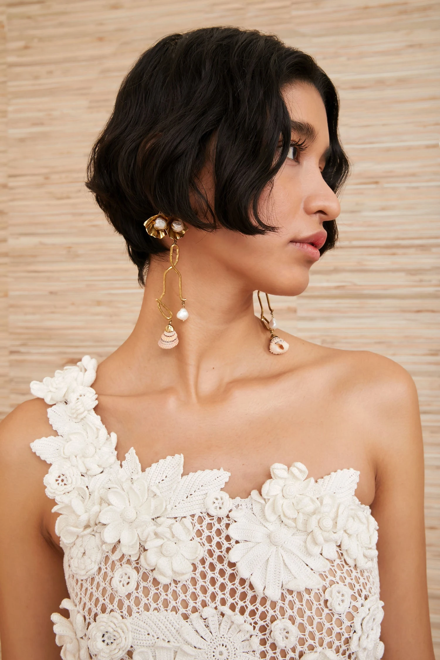 As featured in Look 4 of our SS22 Runway Show, the Sydel Dress is a true passion-project, adorned with blooming motifs across a knitted backdrop. This one-shoulder dress has been handcrafted with care in Peru by longtime partners of Ulla Johnson, and is a true stand-out of the collection. Unlined.