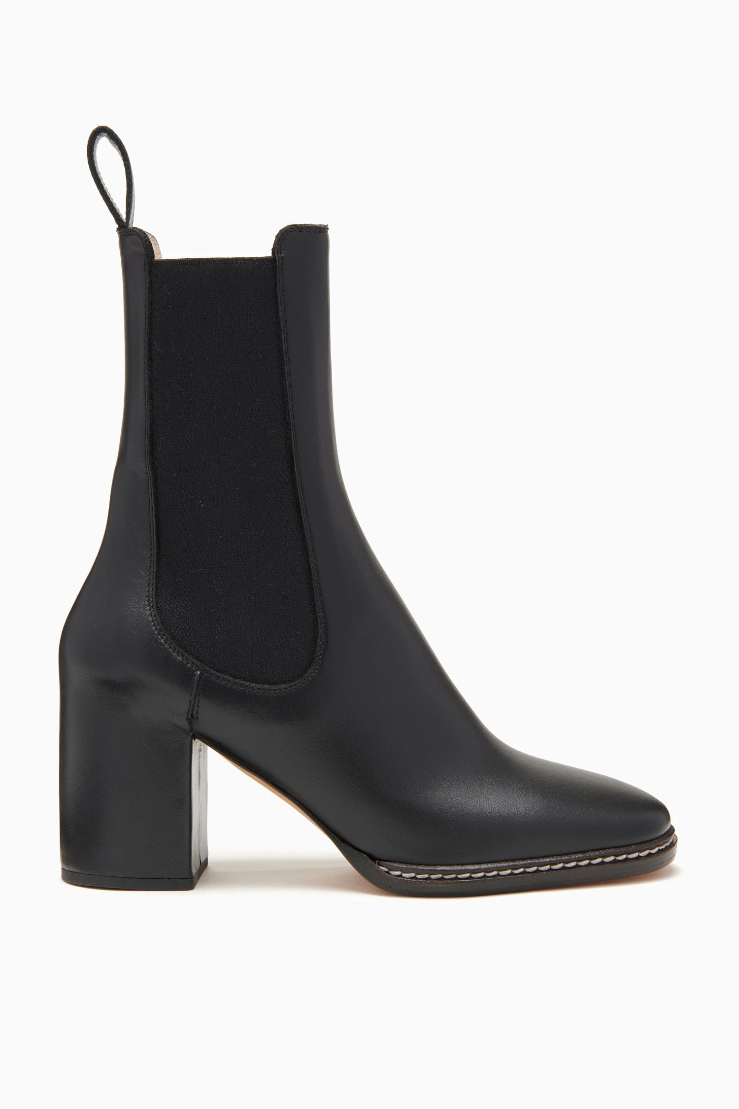 The Taryn Chelsea Boot is beautifully crafted from supple calfskin leather and has a covered 70mm heel. These classic black boots have pull tabs for effortless wear and are finished with elasticated side panels.