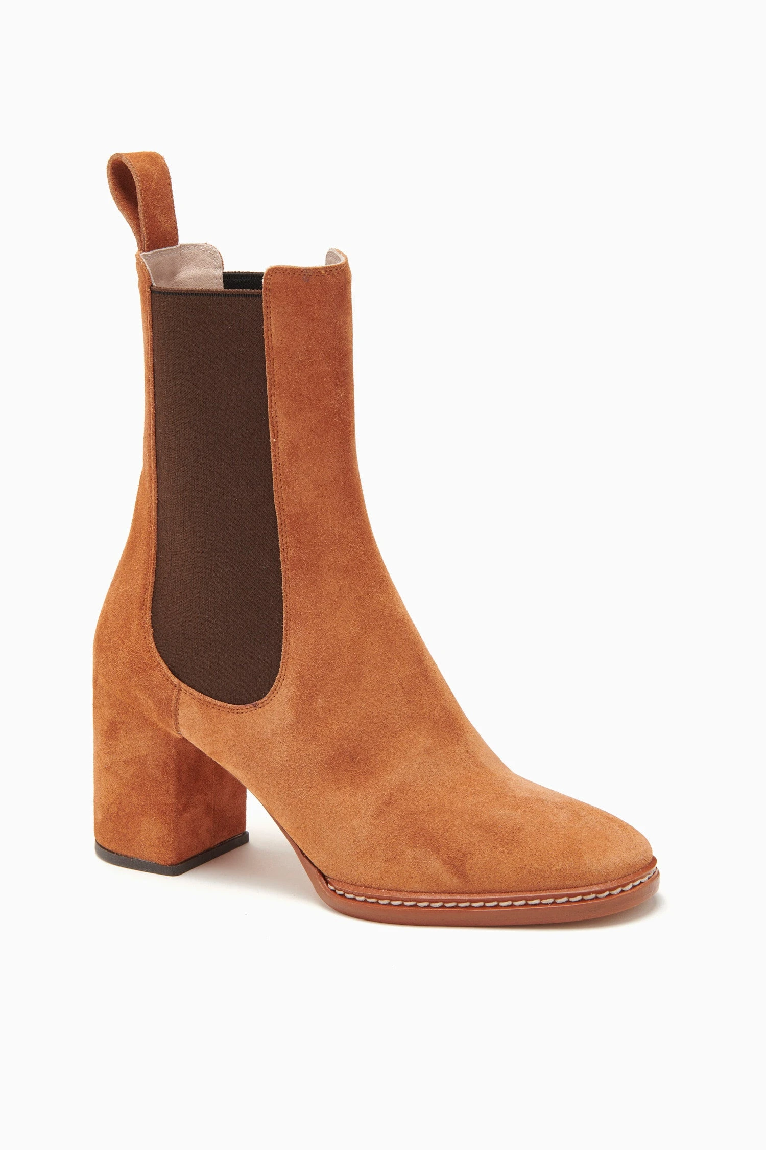 The Taryn Chelsea Boot is beautifully crafted from supple calfskin leather and has a covered 70mm heel. These rich brown boots have pull tabs for effortless wear and are finished with elasticated side panels.