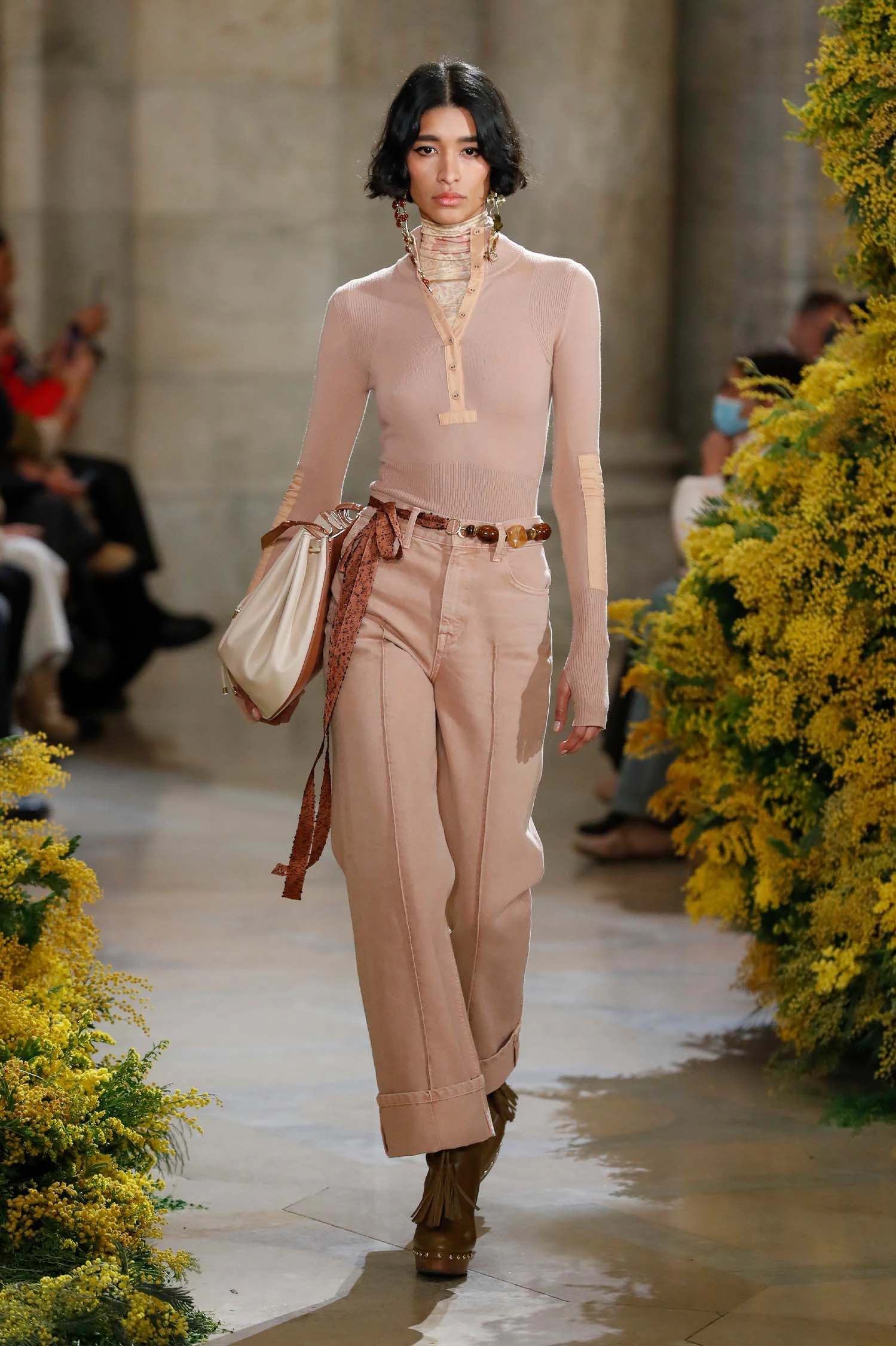 Introducing the Genevieve Jean, one of the iconic new styles of our inaugural denim collection, handmade in Los Angeles. This wide-leg silhouette features a high-waist, folded cuffs, and pintucks down the center front of each leg, arriving in dusty pink-hued Rosewood. This jean is cut in non-stretch denim with a leather logo-embossed waistband patch and a hand-hammered ring attached to the back belt loop. Each style is designed to perfectly complement the silhouettes of every ready-to-wear collection.Â
